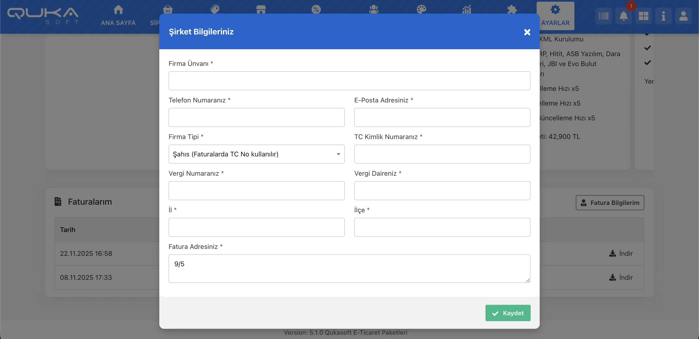Aşağıdaki alanlar işletme bilgilerinize göre doldurulmalıdır: