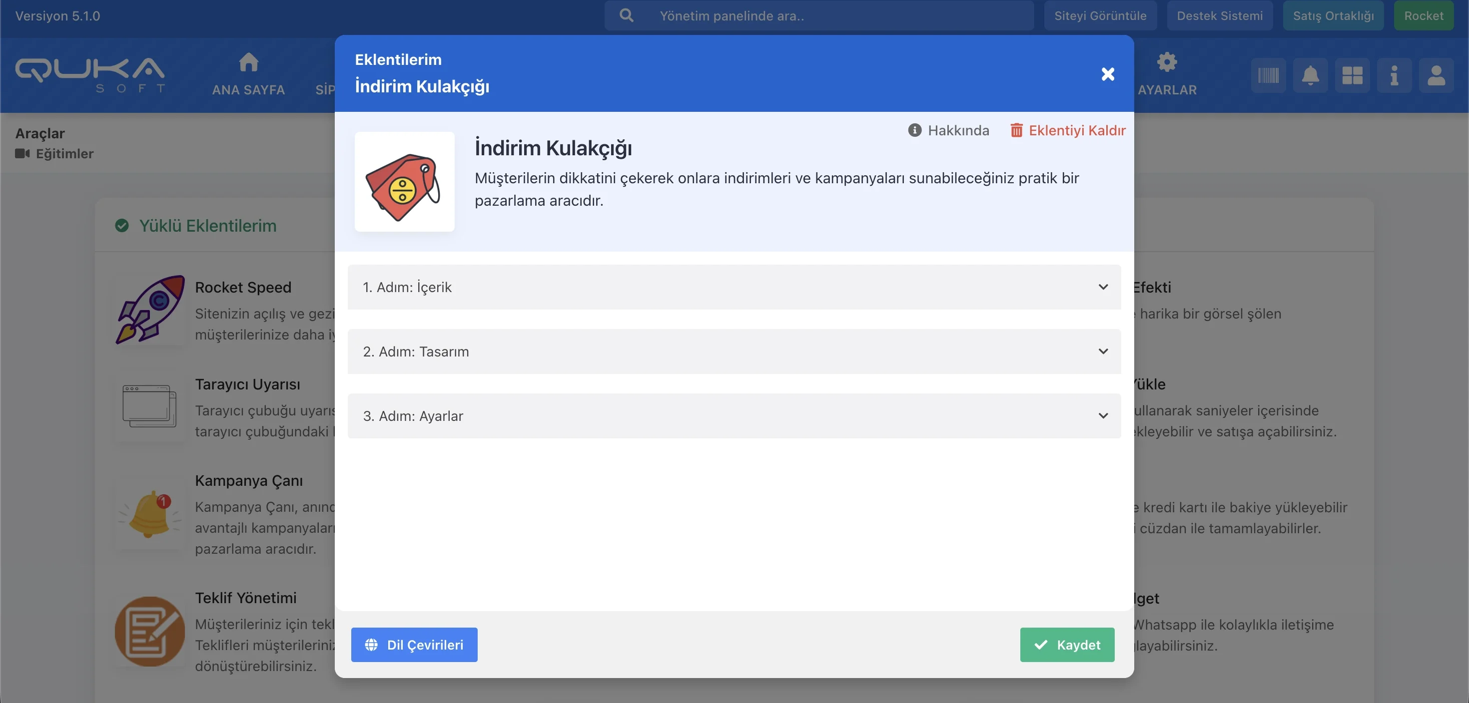 İndirim kulakçığı, ziyaretçilerinizin alışveriş sürecini bölmeden onlara özel fırsatlar, kampanya kodları ve promosyonlar sunmanızı sağlayan dikkat çekici bir etkileşim aracıdır. Qukasoft yönetim paneli üzerinden kolayca özelleştirilebilen bu modül, sayfa kenarına sabitlenen yapısıyla kullanıcı deneyimini bozmadan satış dönüşümlerini artırır.
