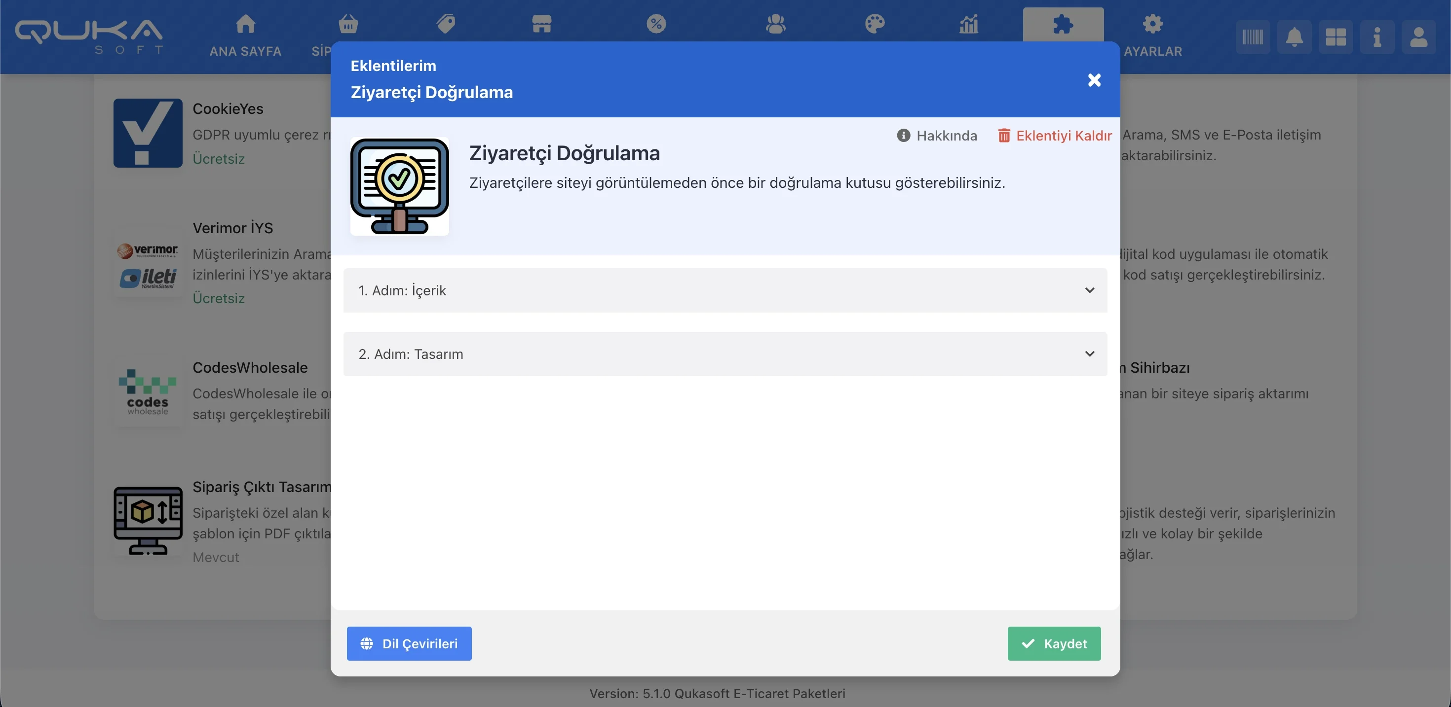 Eklenti bünyesindeki tüm metinler, dil çevirileri bölümünden farklı diller için yerelleştirilebilir. Qukasoft yönetim paneli eklenti ayarlarından kurulum tamamlandıktan sonra doğrulama penceresi tüm ziyaretçiler için aktif hale gelir.