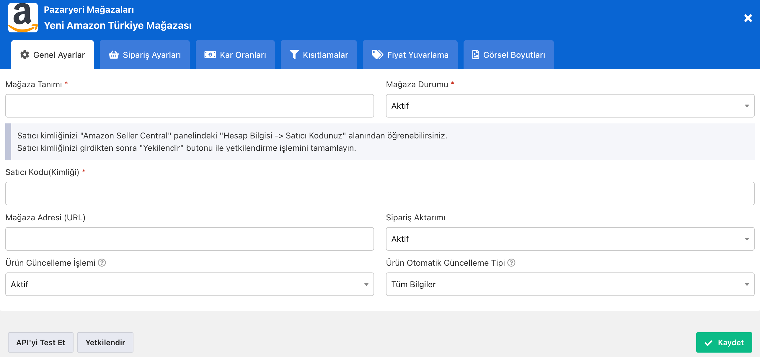 Fiyatlar önce Türk Lirası'na çevrilir, ardından tanımladığınız kar oranları uygulanarak Amazon'a gönderilir. Kar oranlarını düşürmek için "-" (eksi) değer tanımlayabilirsiniz.
