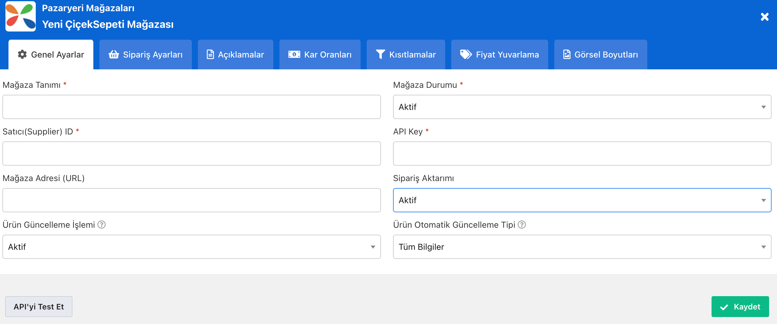 - Mağaza Durumu: Pasif konumdayken ürün ve sipariş aktarımı yapılmaz.