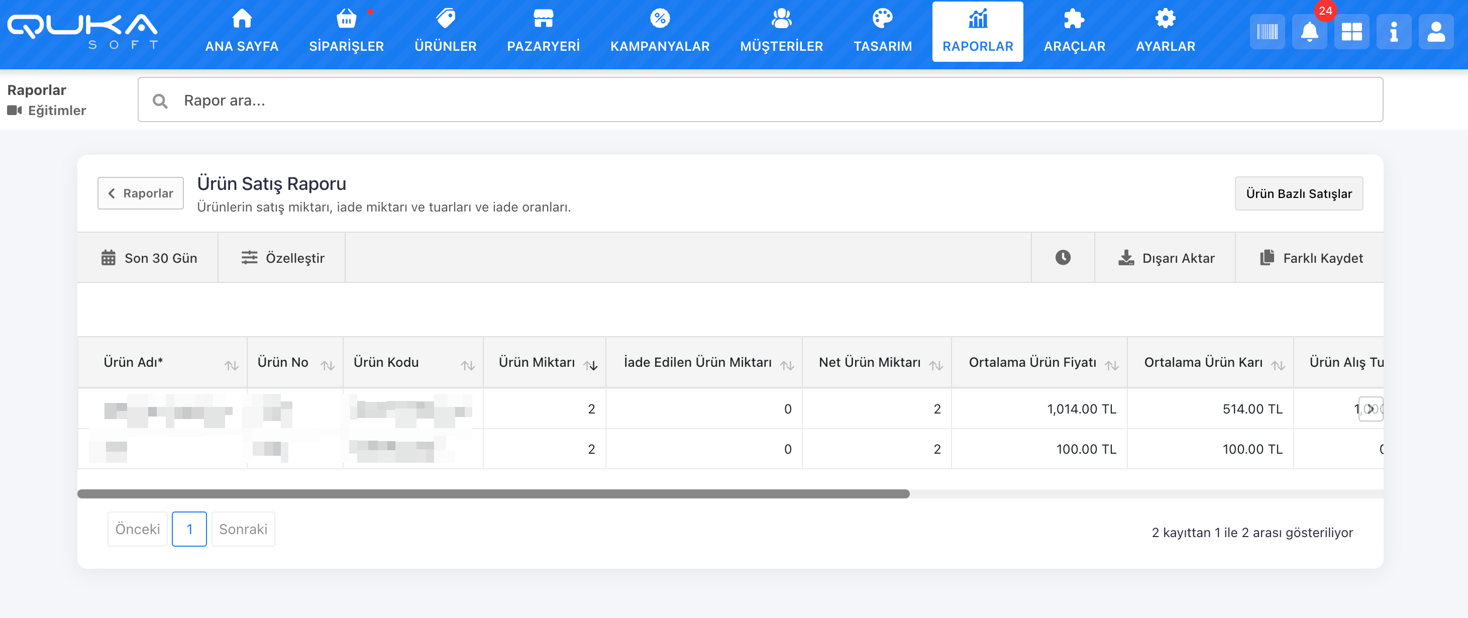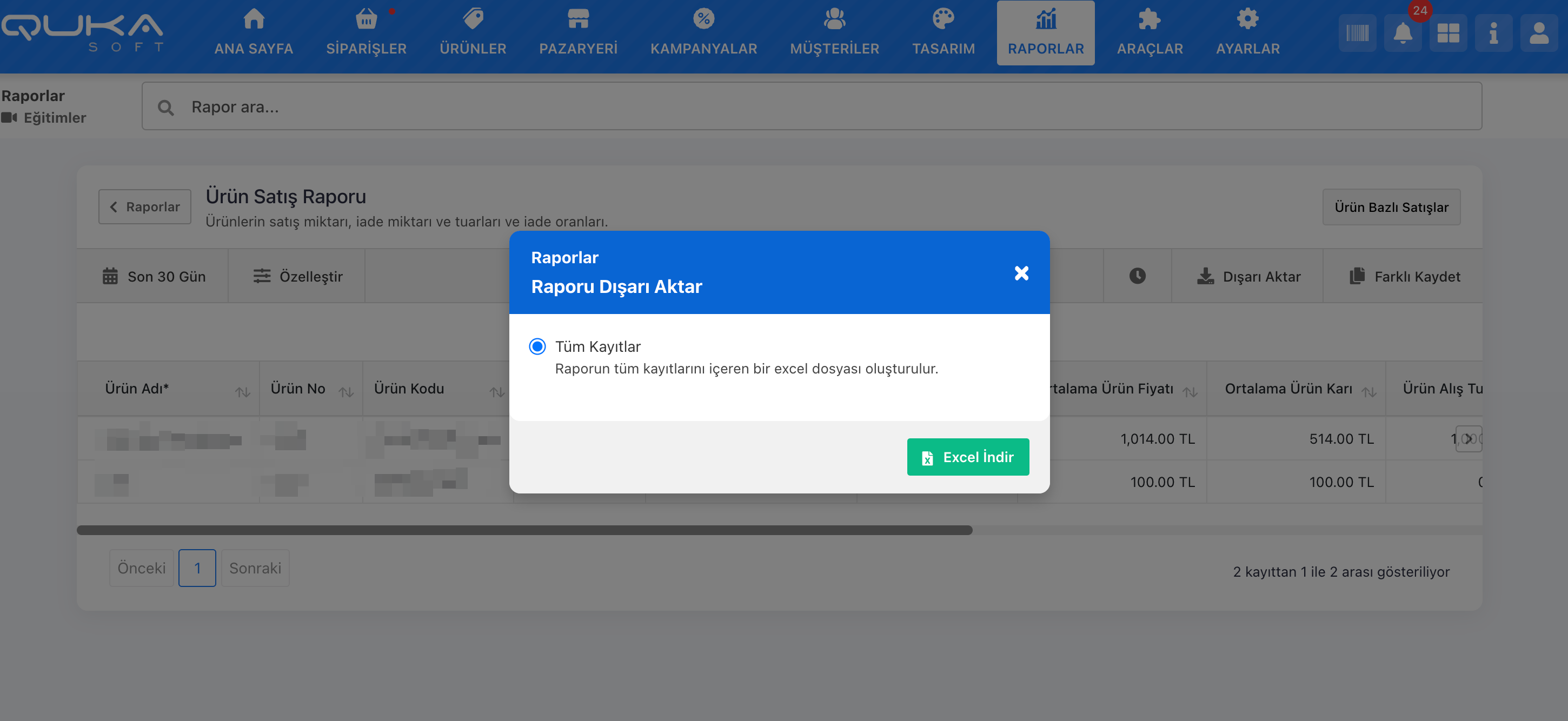 Ürün Raporları