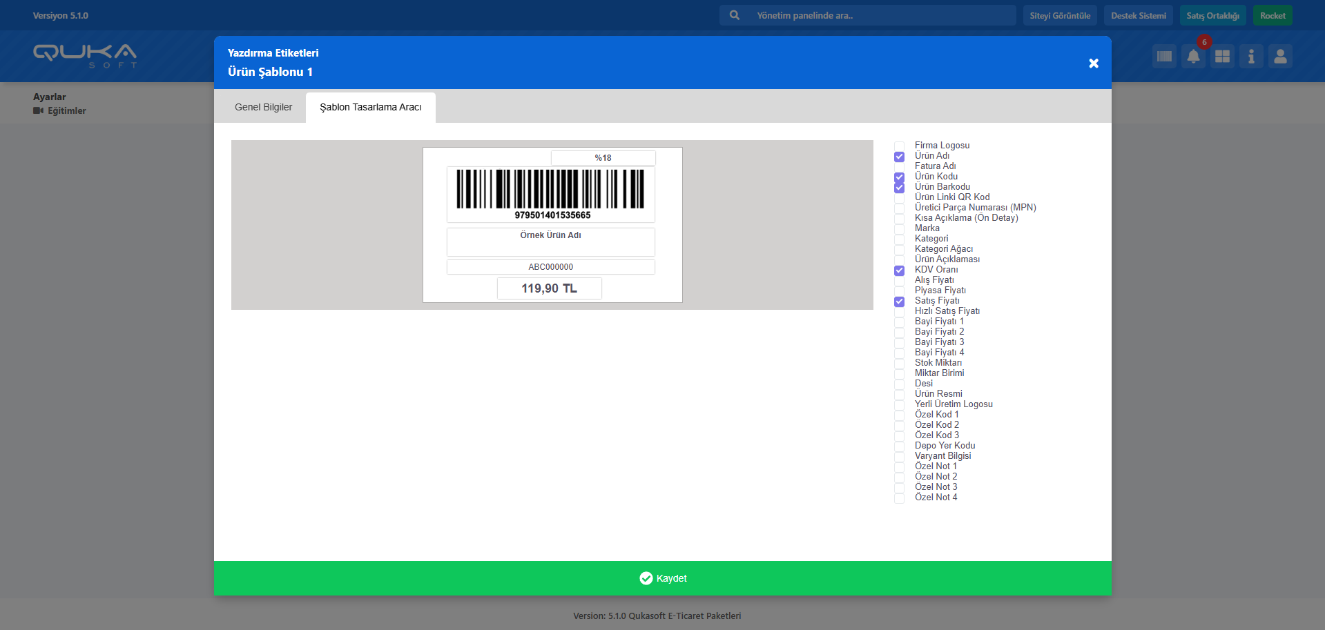 Bu alana admin panelinden Ayarlar > Yazdırma Etiketleri > Ürün Şablonu (1,2,3,4) sekmesinden ulaşabilirsiniz.